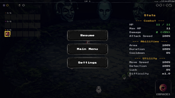 Auto-attack enemies while dodging incoming threats. Collect XP to level up and choose from 3 random abilities. Chain synergies, unlock evolutions, and adapt to the arena's ever-changing moods.